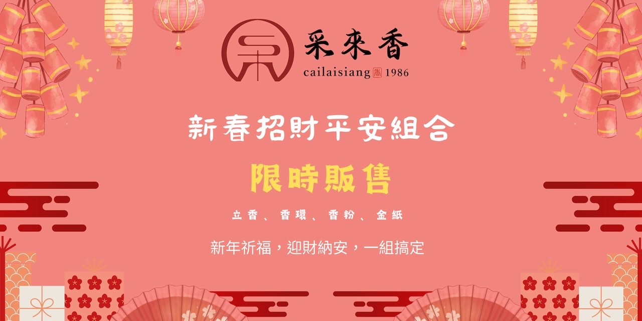 采來香【新春招財平安組合包】 立香、香粉、香環、金紙一次備齊, 從除夕到元宵,拜得完整、心也踏實。 新年祈福,不必再東買西買。